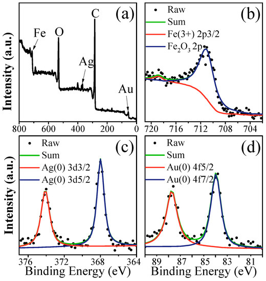 3.1. Synthesis of Au-Ag-γ-Fe2O3/rGO Nanocomposites
