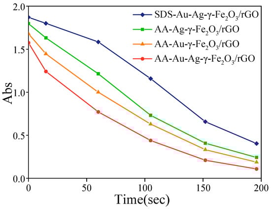 3.2. Catalytic Reaction of 4-NP by Au-Ag-γ-Fe2O3/rGO Nanocomposites