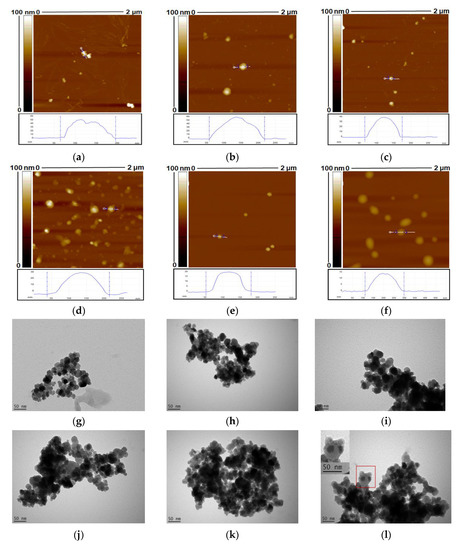 Atomic force microscopy (AFM) and transmission electron microscope (TEM) images of MAPs (a,g) and MACPs with the layer number of 1 (b,h), 4 (c,i), 5 (d,j), 8 (e,k) and 9 (f,l). Smaller particles were observed for MACPs with SA as the outermost layer.