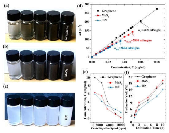 - Green, A.A.; Hersam, M.C. Solution Phase Production of Graphene with Controlled Thickness via Density Differentiation. Nano Lett. 2009, 9, 4031–4036. [Google Scholar] [CrossRef] [PubMed]