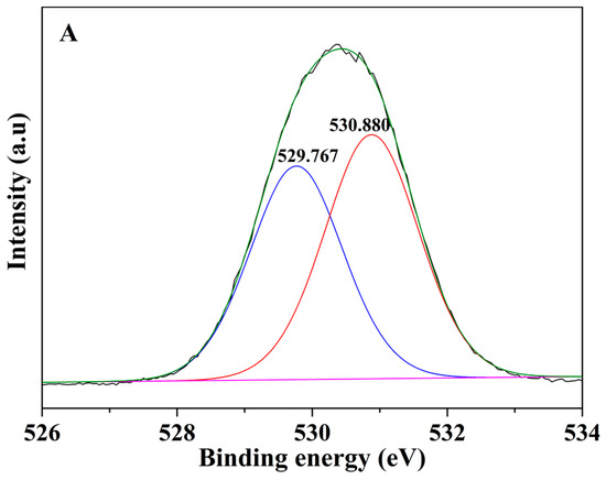 In order to clarify the adsorption mechanism of the mp-CA/GO, we monitored the amount of each metal ion in the adsorption process. It can be seen from Figure 9 that the mole amount of Pb2+, Cu2+ and Cd2+ in the solution decreased while Ca2+ increased as the reaction proceeded. This illustrates that, in the first adsorption process, the adsorption of heavy metal ions is mainly completed by ion exchange. However, the mole amount of the adsorbed Pb2+, Cu2+, or Cd2+ is higher than that of the desorbed Ca2+ during the different adsorption periods, indicating that the ion exchange is only one of the mechanisms. In order to fully understand the essence of adsorption, we further analyzed the O one s spectra before and after Pb2+, Cu2+, and Cd2+ adsorption (Figure 10). The two peaks at 530.88 and 529.767 eV in the O one s spectrum are attributed to the oxygen-containing functional groups. New peaks appeared at 530.461, 530.728, and 530.866 eV, respectively, after the adsorption of Pb2+, Cu2+, and Cd2+, indicating that the oxygen groups of on mp-CA/GO were involved in chemisorption of Pb2+, Cu2+, and Cd2+. Therefore, the excellent adsorption performance of mp-CA/GO is attributed to the combined action of chemical coordination and ion exchange.