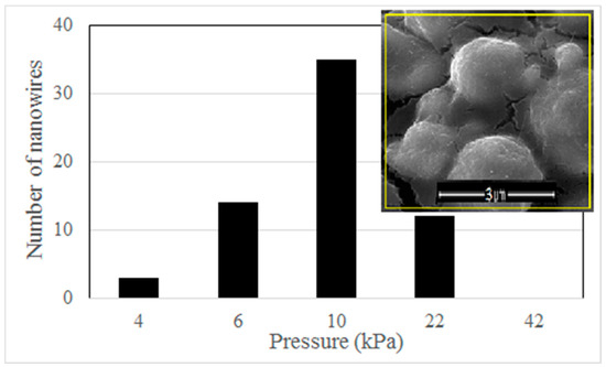 Statistic result of nanowires grown on the hot plate under different external forces. Inset: SEM image of 5 × 5 μm2 area (yellow square) under the pressure of 1 × 104 Pa.