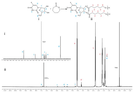 1H NMR spectra of (i) 5’-DFUR and (ii) 5’-DFUR-PCL.