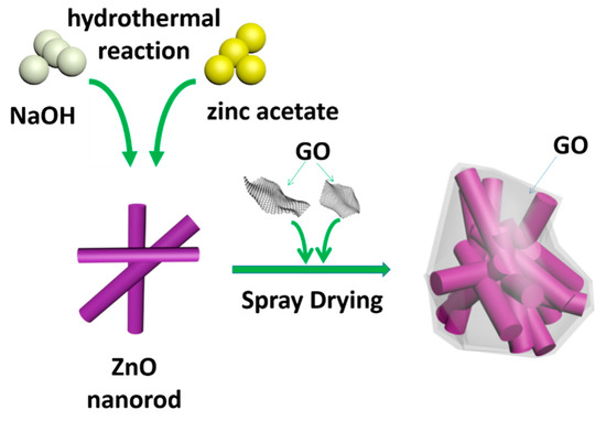 The preparation process and structure diagram of of ZnO/graphene composite is depicted in Figure 1.
