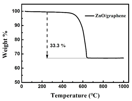 Figure 6. Thermogravimetric analysis (TGA) analysis of the ZnO/graphene composite.