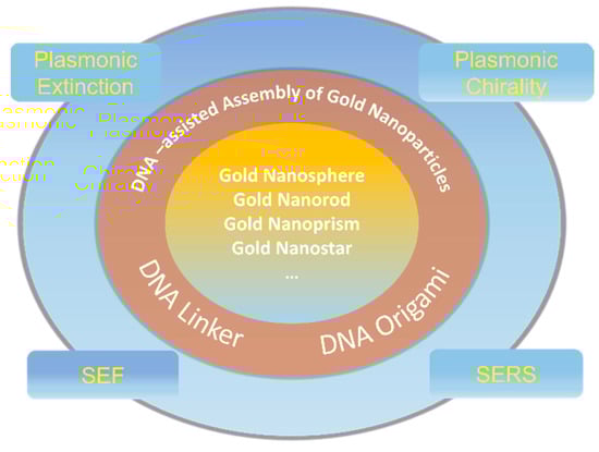 - Tan, S.J.; Campolongo, M.J.; Luo, D.; Cheng, W. Building plasmonic nanostructures with DNA. Nat. Nanotechnol. 2011, 6, 268–276. [Google Scholar] [CrossRef] [PubMed]