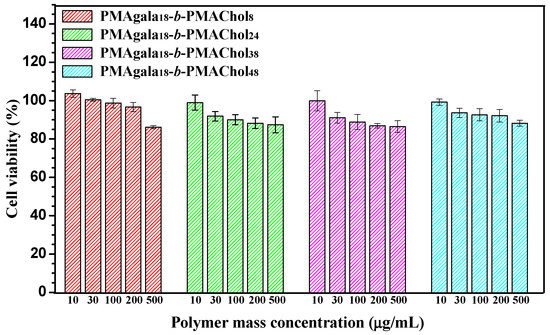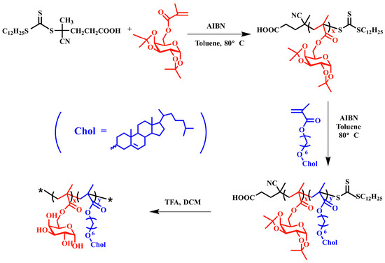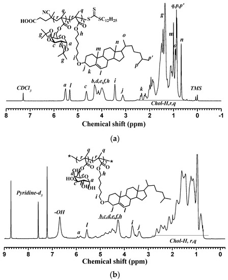 3.1. Synthesis and Characterization of the PMAgala-b-PMAChol Amphiphilic Copolymers