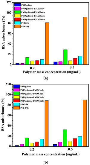 3.4. Serum Protein Adsorption of the PMAgala-b-PMAChol Aggregates