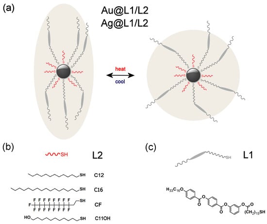 - Lewandowski, W.; Jatczak, K.; Pociecha, D.; Mieczkowski, J. Control of gold nanoparticle superlattice properties via mesogenic ligand architecture. Langmuir 2013, 29, 3404–3410. [Google Scholar] [CrossRef] [PubMed]