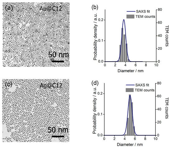 2.2. Characterization of Au@C12 and Ag@C12 Nanoparticles