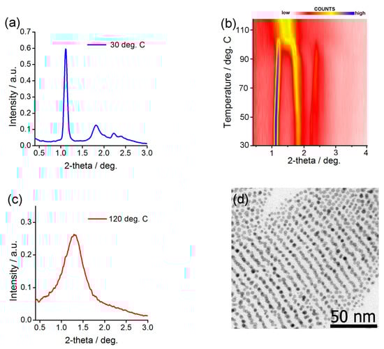 - Diroll, B.T.; Jishkariani, D.; Cargnello, M.; Murray, C.B.; Donnio, B. Polycatenar Ligand Control of the Synthesis and Self-Assembly of Colloidal Nanocrystals. J. Am. Chem. Soc. 2016, 138, 10508–10515. [Google Scholar] [CrossRef] [PubMed]