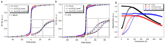 - Banerjee, S.; Raja, S.O.; Sardar, M.; Gayathri, N.; Ghosh, B.; Dasgupta, A. Iron oxide nanoparticles coated with gold: Enhanced magnetic moment due to interfacial effects. J. Appl. Phys. 2011, 109, 123902. [Google Scholar] [CrossRef]