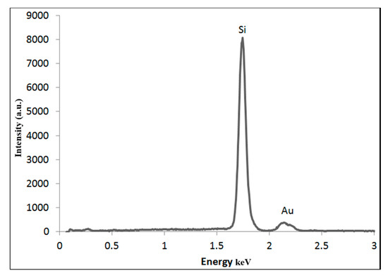 Figure 4. Energy dispersive X-ray (EDX) analysis confirms that AuNPs contain gold only. The Si signal is from the silicon substrate.