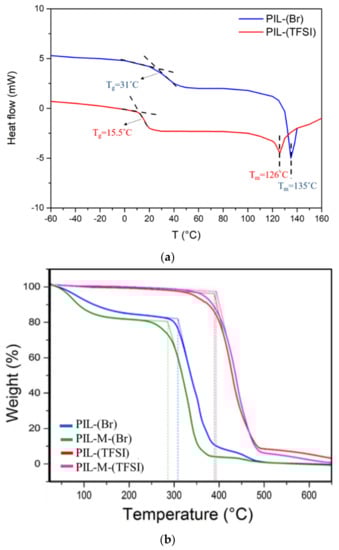 3.3. Thermal Gravity Analysis of PILs Derived from Photopolymerization
