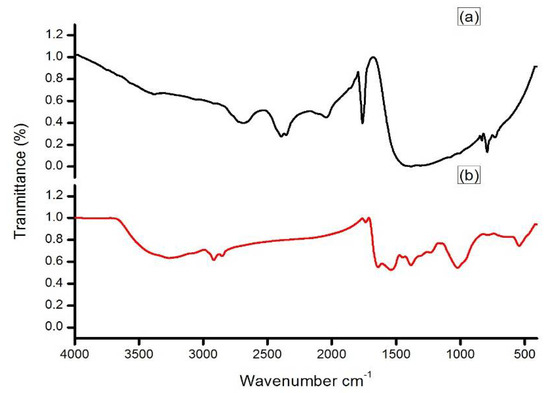 The FTIR spectrum of the silver nanoparticles derived from marine Streptomyces sp. Al-Dhabi-87. (a) FTIR spectrum of Siver nitrate (b) FTIR spectrum of nanoparticles.