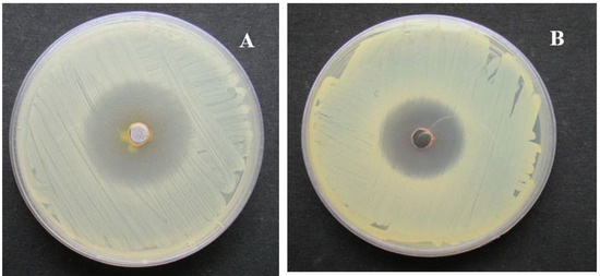 Antibacterial activity of the silver nanoparticles derived from marine Streptomyces sp. Al-Dhabi-87. (A) Bacillus subtilis; (B) Staphylococcus aureus.