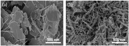 SEM images of (a) MnO2 nanosheets and (b) MnO2 nanorods.