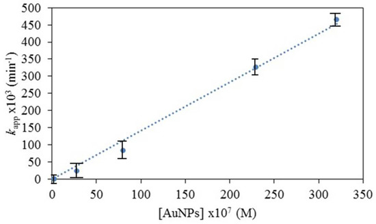 Plot of apparent rate constant kapp versus concentration of AuNPs (data from Table 1).