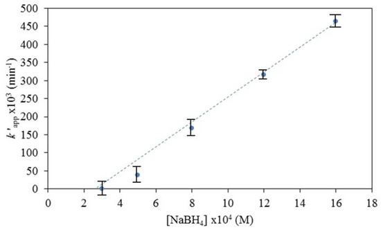 The rate of reaction also increases with the concentration of sodium borohydride, as observed by other authors [34,39,59].