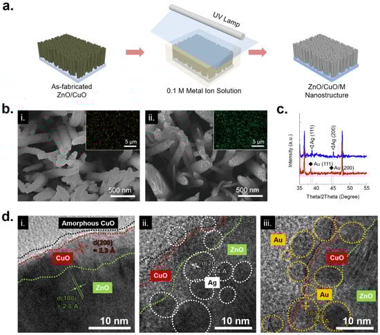 Kwon, J.; Cho, H.; Jung, J.; Lee, H.; Hong, S.; Yeo, J.; Han, S.; Ko, S.H. ZnO/CuO/M (M = Ag, Au) Hierarchical Nanostructure by Successive Photoreduction Process for Solar Hydrogen Generation. Nanomaterials 2018, 8, 323. https://doi.org/10.3390/nano8050323