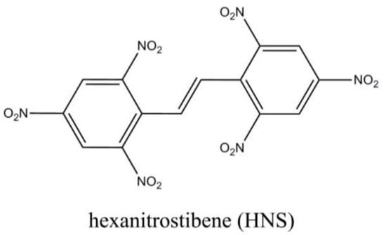The chemical structure of the hollow spherical hexanitrostibene (HNS).