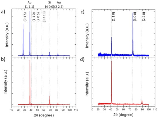 Figure 3c,d) do not show such clear changes of their crystalline structure when the applied voltage is changed, as it was previously seen in the case of the films. Most of the 3D nanowire networks grown present a preferred crystal orientation along the (1 1 0), as it was shown in