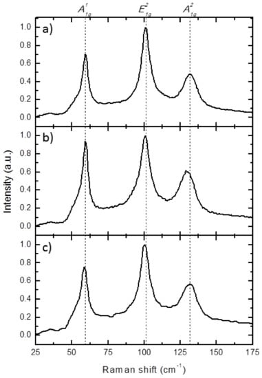 Figure 4a–c, respectively. In all cases, the only peaks we observe are the ones associated with the vibrational modes of Bi