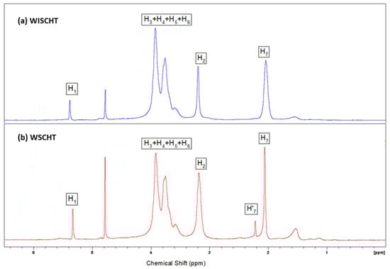 Proton nuclear magnetic resonance (1H NMR) spectra of (a) WISCHT and (b) WSCHT.