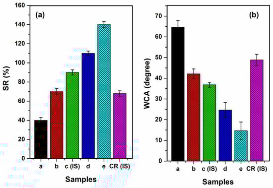 (a) Swelling ratio (SR%) and (b) water contact angle (WCA).