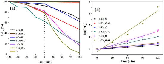 - Liu, S.-H.; Yang, S.-W. Highly efficient cuprous oxide nanocrystals assisted with graphene for decolorization using visible light. Water Air Soil Pollut. 2018, 229, 67. [Google Scholar] [CrossRef]