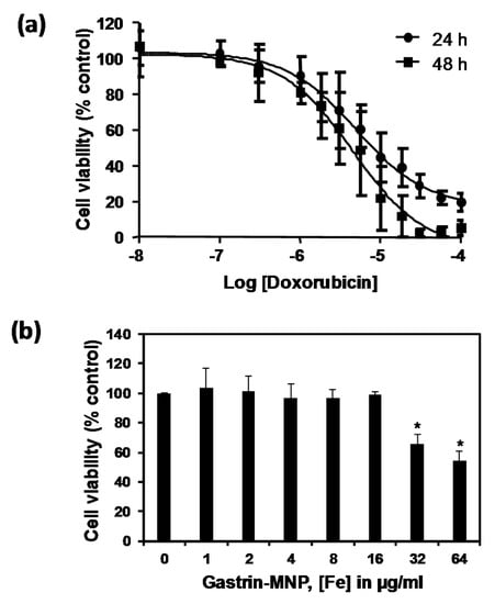 3.1. Doxorubicin and Gastrin–MNP Cytotoxicity