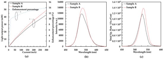 - Oh, M.S.; Kwon, M.K.; Park, I.K.; Baek, S.H.; Park, S.J.; Lee, S.H.; Jung, J.J. Improvement of green LED by growing p-GaN on In0.25GaN/GaN MQWs at low temperature. J. Cryst. Growth 2006, 289, 107–112. [Google Scholar] [CrossRef]