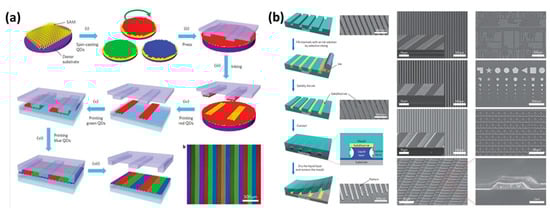 - Menard, E.; Meitl, M.A.; Sun, Y.G.; Park, J.U.; Shir, D.J.L.; Nam, Y.S.; Jeon, S.; Rogers, J.A. Micro- and nanopatterning techniques for organic electronic and optoelectronic systems. Chem. Rev. 2007, 107, 1117–1160. [Google Scholar] [CrossRef] [PubMed]