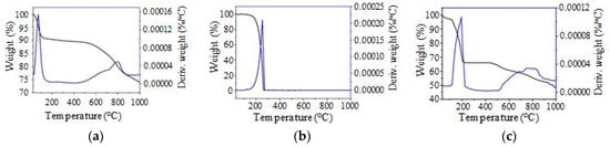 The TGA/DTG analysis was used to study the thermal stability of the SSPCM-C20. For the TES application, the thermal stability of the material is very important. Figure 6a–c show the TGA/DTG thermograms of C20, n-octadecane, and SSPCM-C20. C20 shows no thermal decomposition of the sample below 512 °C, however, a decomposition was observed from this temperature up to 861 °C due to further pyrolysis. This is because the carbonization of C20 was done at only 500 °C. This result indicates that the AC produced is thermally stable up to 513 °C. The C20 is thermally stable until 500 °C and able to be used as a supporting material for PCM. In contrast, the n-octadecane shows a weight loss between 94.00–253.7 °C, which is due to the evaporation of n-octadecane. The SSPCM-C20 nano-composite exhibits a similar thermal stability to that of C20. In general, the weight loss of the SSPCM-C20 nano-composite agrees well with the one obtained from the DSC result with an encapsulation efficiency of 32%.
