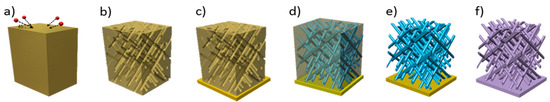 - Rauber, M.; Alber, I.; Müller, S.; Neumann, R.; Picht, O.; Roth, C.; Schökel, T.; Toimil-Molares, M.E.; Ensinger, W. Highly-ordered supportless three-dimensional nanowire networks with tunable complexity and interwire connectivity for device integration. Nano Lett. 2011, 11, 2304. [Google Scholar] [CrossRef] [PubMed]
