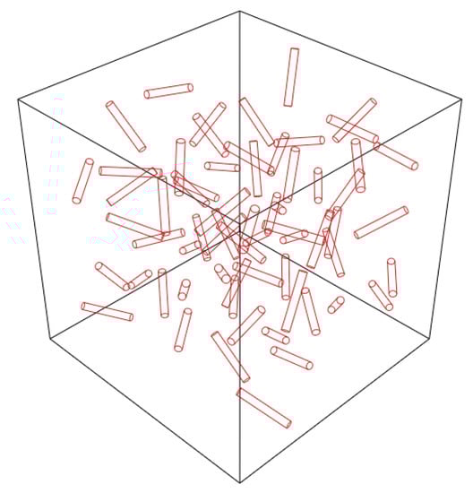 3D view of the representative volume element (RVE) with the volume of 1500 × 1500 × 1500 nm³ and the random dispersion of the equivalent fibers.