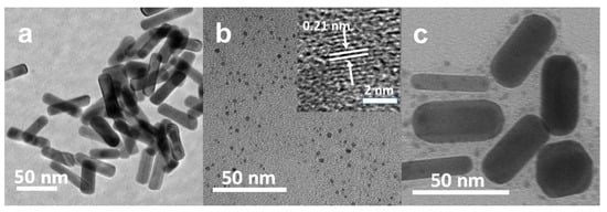 - Nikoobakht, B.; El-Sayed, M.A. Preparation and growth mechanism of gold nanorods (NRs) using seed-mediated growth method. Chem. Mater. 2003, 15, 1957–1962. [Google Scholar] [CrossRef]