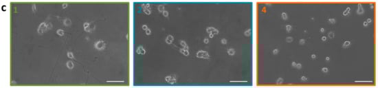 In order to determine whether the conjugated NGF protein retained its biological activity, and was not harmed by the binding process, we examined NGF-MNPs’ functionality. We used PC12 cells, a common model for neuronal differentiation, which differentiate and extend branching neurites when exposed to NGF in vitro []. NGF-MNPs were added to PC12 cells that were cultured a day before on collagen-coated plates. The NGF-MNPs were found to induce PC12 differentiation. The cells demonstrated neurite outgrowth and they formed a branched network (Figure 1f).