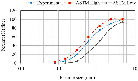 Ordinary Portland cement (OPC) type I according to ASTM C150 [28] (American Society for Testing and Materials) was used in this research. The chemical compositions of the OPC can be found in Table 1. Fine aggregate (sand) used for the mortar samples was obtained from CEMEX (Orlando, FL, USA) with a gradation per ASTM C33 [29] as shown in Figure 1.