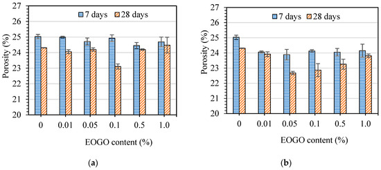 Effect of EOGO on the porosity of mortars: (a) Dry-mix design and (b) wet-mix design.