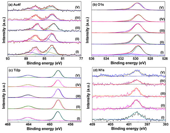 | Samples | DAua | Binding Energy (eV) | Proportion (at%) | Au/Ti Atomic Ratios | ||