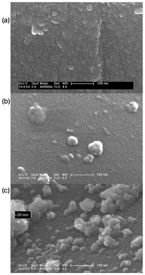 Particle size and morphology of the titania nanoparticles were analyzed with Scanning Electron Microscope SEM Philips XL-30 S-FEG, equipped with W source detectors of secondary and backscattering electrons and a vacuum sample chamber with a vacuum of lower than Pa. Prior to imaging, the samples were sputtered with a 12 nm thin film of chrome.