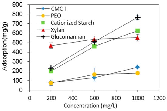 The adsorption of different macromolecules onto BC fibers at different concentrations.