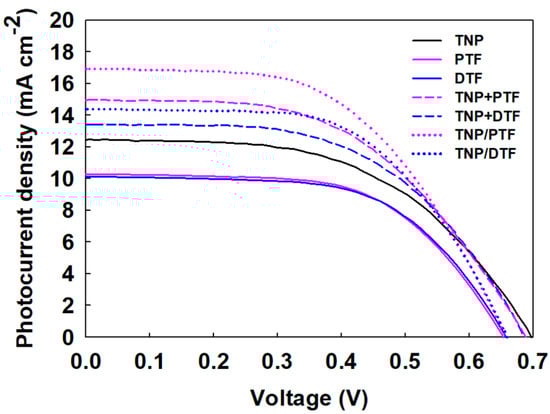 Photocurrent density–voltage curves of the DSSCs with different photoelectrodes.