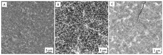 SEM images of the polished and fractured surfaces of ceramic composites are presented in Figure 2A,B.