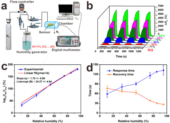 - Wang, S.; Chen, Z.; Umar, A.; Wang, Y.; Tian, T.; Shang, Y.; Fan, Y.; Qi, Q.; Xu, D. Supramolecularly modified graphene for ultrafast responsive and highly stable humidity sensor. J Phys. Chem. C 2015, 119, 28640–28647. [Google Scholar] [CrossRef]