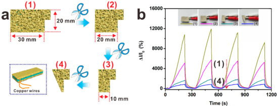 - Jeong, Y.R.; Park, H.; Jin, S.W.; Hong, S.Y.; Lee, S.-S.; Ha, J.S. Highly stretchable and sensitive strain sensors using fragmentized graphene foam. Adv. Funct. Mater. 2015, 25, 4228–4236. [Google Scholar] [CrossRef]