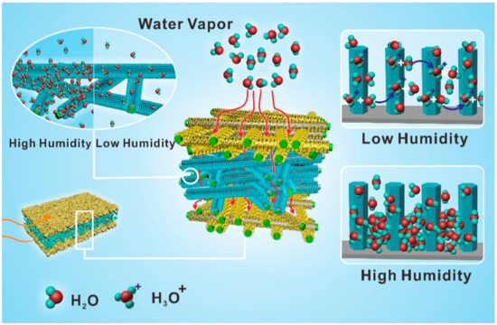 - Shen, D.; Xiao, M.; Xiao, Y.; Zou, G.; Hu, L.; Zhao, B.; Liu, L.; Duley, W.W.; Zhou, Y.N. Self-powered, rapid-response and highly flexible humidity sensors based on moisture-dependent voltage generation. ACS Appl. Mater. Interfaces 2019, 11, 14249–14255. [Google Scholar] [CrossRef] [PubMed]