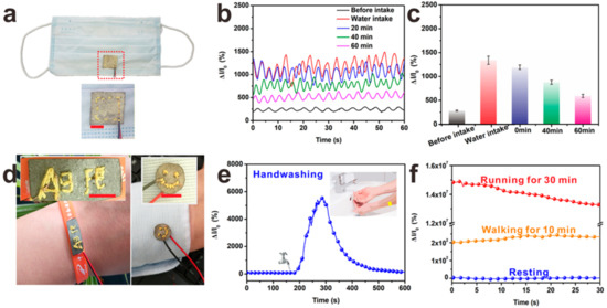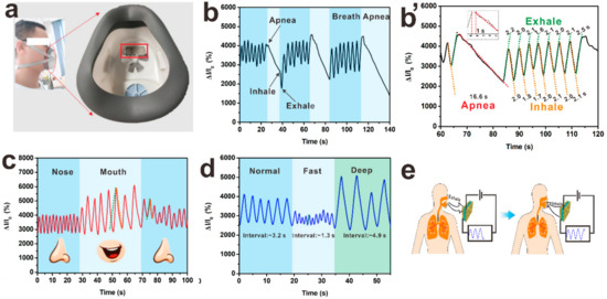 - Pang, Y.; Jian, J.M.; Tu, T.; Yang, Z.; Ling, J.; Li, Y.X.; Wang, X.F.; Qiao, Y.C.; Tian, H.; Yang, Y.; et al. Wearable humidity sensor based on porous graphene network for respiration monitoring. Biosens. Bioelectron. 2018, 116, 123–129. [Google Scholar] [CrossRef]
