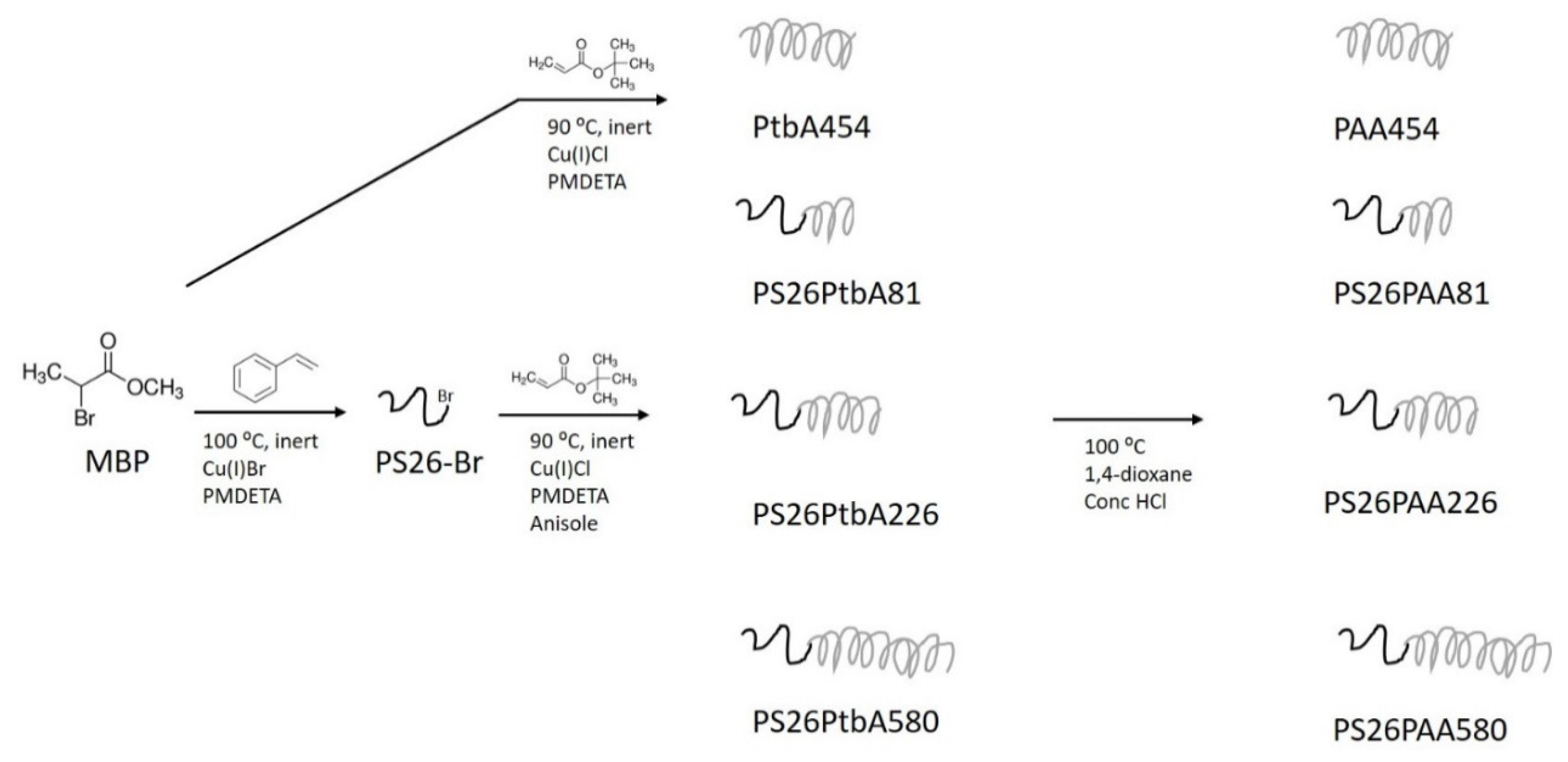 - Di Sacco, F.; Pucci, A.; Raffa, P.; Di Sacco, F.; Pucci, A.; Raffa, P. Versatile multi-functional block copolymers made by atom transfer radical polymerization and post-synthetic modification: Switching from volatile organic compound sensors to polymeric surfactants for water rheology control via hydrolysis. Nanomaterials 2019, 9, 458. [Google Scholar] [CrossRef]